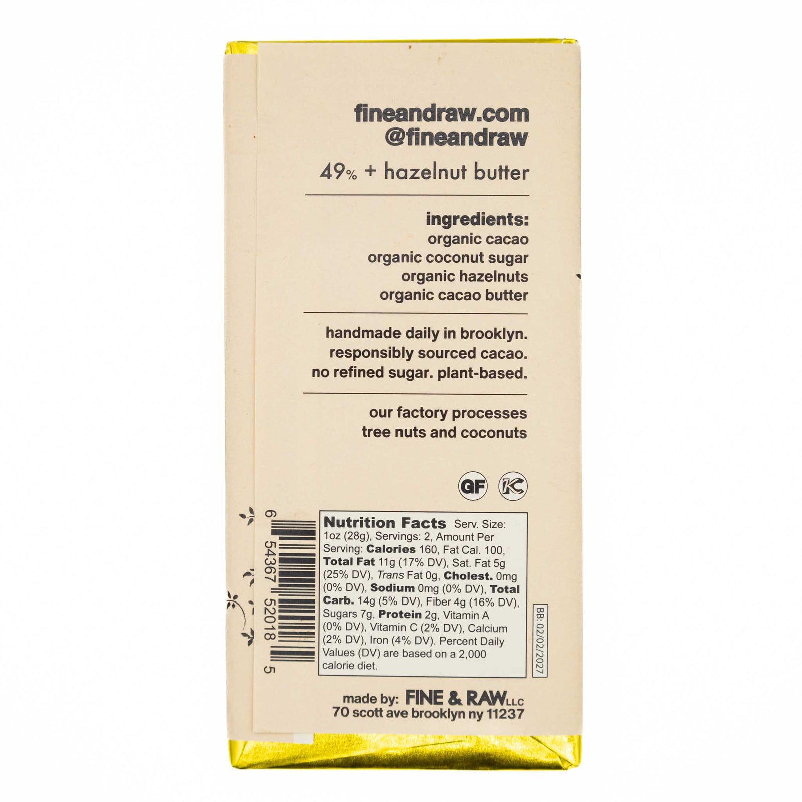Fine & Raw Holiday Chocolate Bar Hazelnut Butter