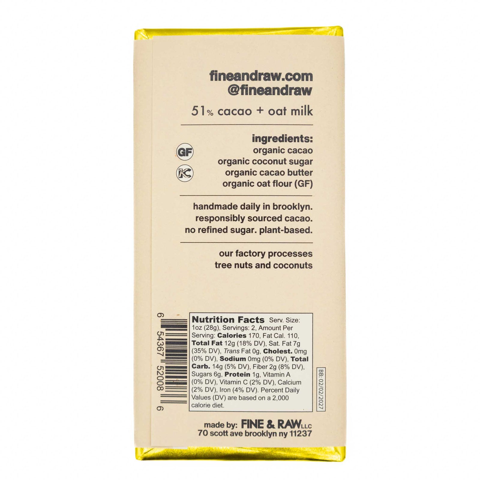 Fine & Raw Holiday Chocolate Bar Oat Milk
